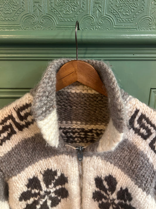 Vintage 1950s Thick Knit Classic Black & White Cardigan Jumper Talon Zipper Novelty Print Shrunken Wool Size 8