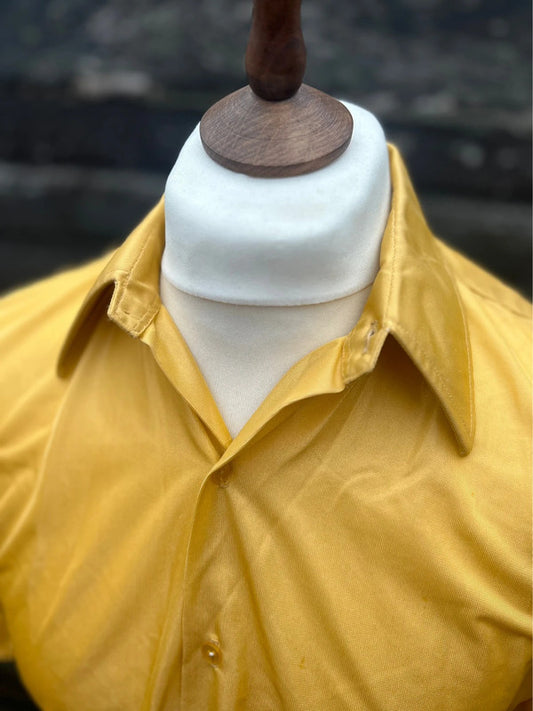 Vintage 1970s Bri-Nylon Slim Fit Yellow Dagger Collar Shirt Small