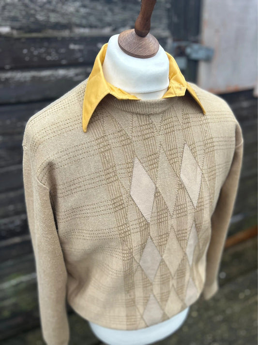 Vintage 1970s Gabicci Soulboy Style Northen Soul Beige Jumper Large