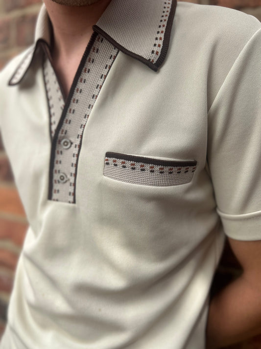 1960s Brown and Beige Collar Shirt with Pocket Detailing Medium