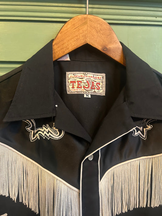 Vintage American TEJAS Western Cowboy Shirt Fringe Detail Press Stud Closure Medium