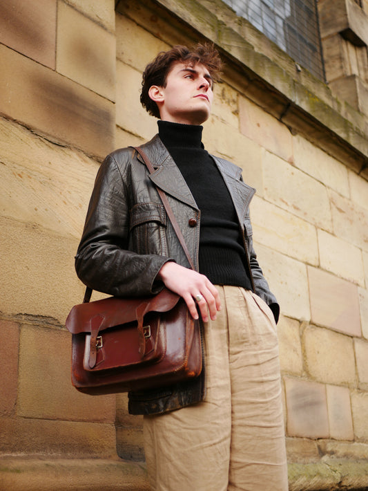 Vintage 1970s Distressed Large Lapels Leather Jacket Small