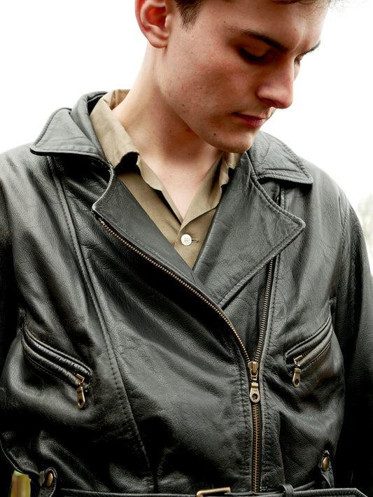 1970s American Mens Belted Leather Jacket