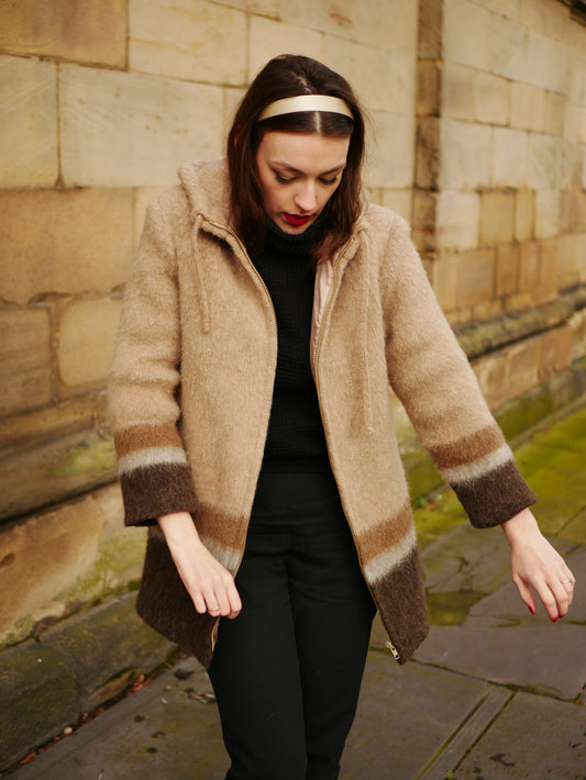 Vintage 1970s 50s Style Mohair Zip-Up Cardigan Warm Gradient Medium